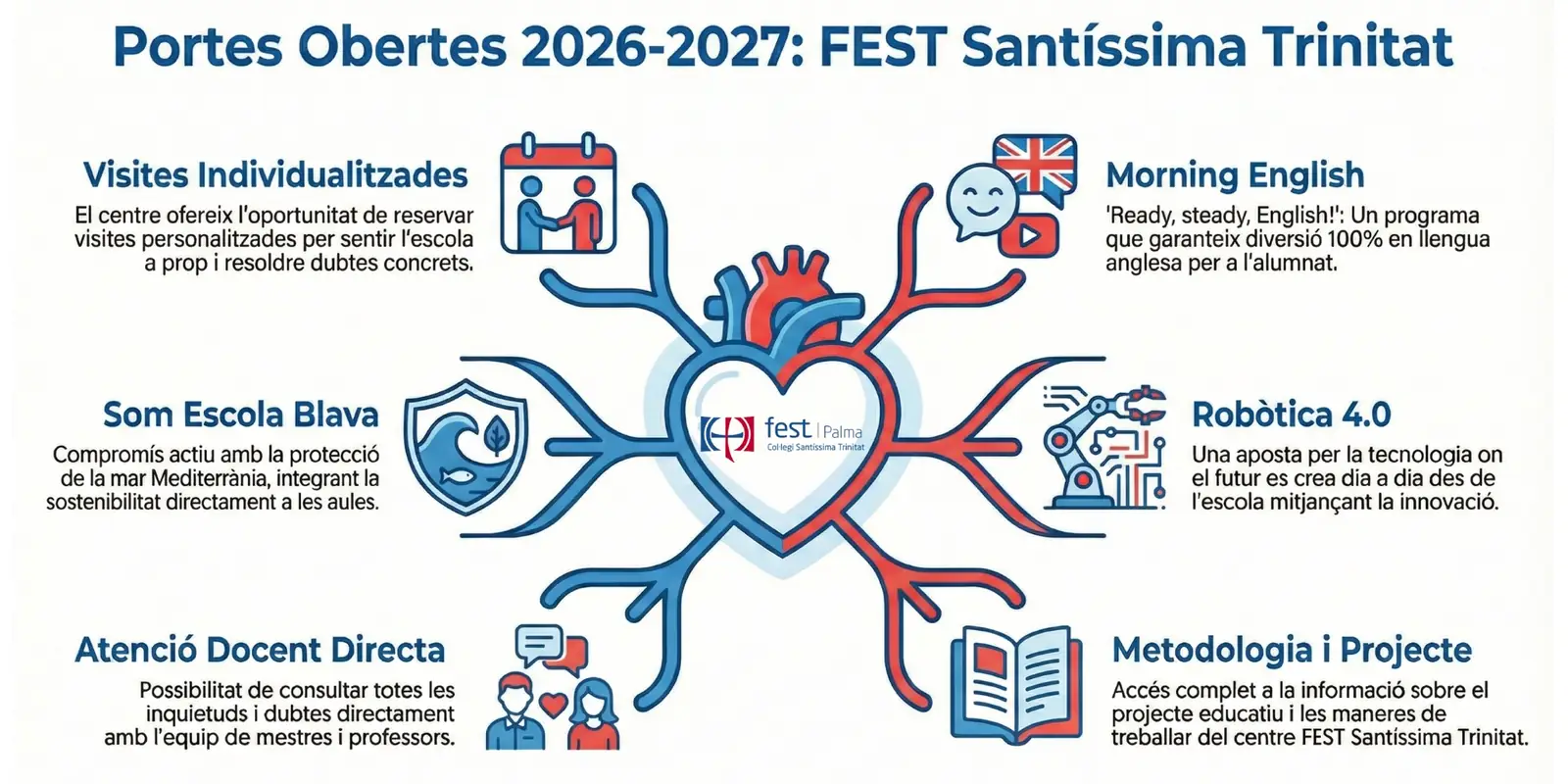 El Col·legi Santíssima Trinitat de Palma és un centre concertat, situat al centre de la ciutat, obert a tothom i compromès amb una educació de qualitat basada en els valors humans i cristians. El centre ofereix les etapes d’Educació Infantil, Educació Primària i Educació Secundària Obligatòria (ESO), acompanyant l’alumnat al llarg del seu creixement acadèmic i personal.